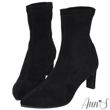 Ann’S慾望巴黎-防水絨布貼腿直跟襪靴6cm-黑