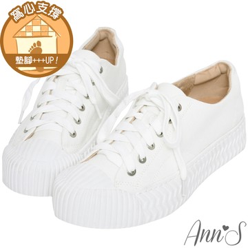 Ann’S黑科技-弄不髒防潑水綁帶金釦帆布鞋-米