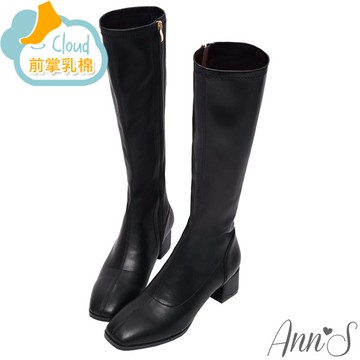 ⭐APP結帳任一雙66折⭐Ann’S防潑水材質-有彈性的全素面粗跟及膝長靴5cm-黑