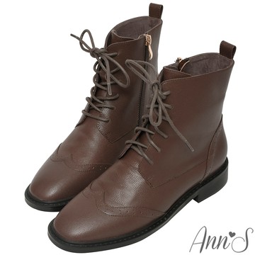 Ann’S英倫風-復古雕花牛津層次綁帶低跟短靴-深咖