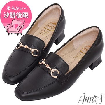 Ann’S時髦復古-韓系粗跟樂福休閒便鞋-漆皮黑