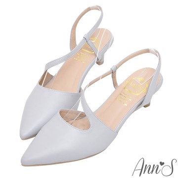 Ann’S高訂綿羊皮-性感腳背曲線後拉帶低跟尖頭鞋5cm-灰藍