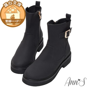 Ann’S防潑水材質-走整天都不累 素面顯瘦短靴6cm-黑