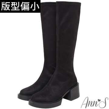 Ann’S真絲彈力絨~加寬版顯瘦100分厚底圓頭及膝長靴6cm-黑