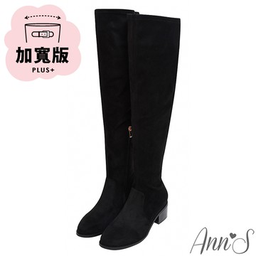 Ann’S真絲彈力絨~加寬版顯瘦100分厚底圓頭及膝長靴6cm-黑
