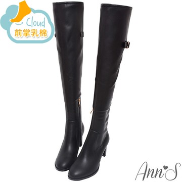 ANNSTAR 春妞聯名-可愛可壞棉花糖彈力皮革厚底長靴6cm-黑