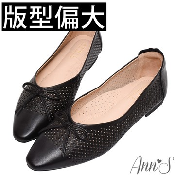 Ann’S拇指外翻大容量!名品編織羊皮真皮蝴蝶結平底娃娃鞋-杏(版型偏大)