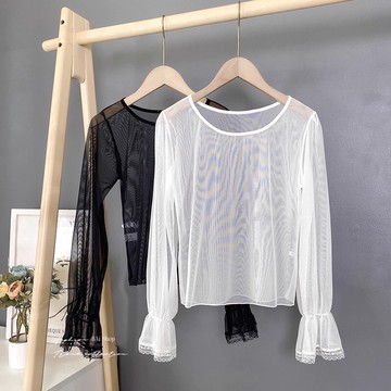 LULUS/單穿也不怕小立領透膚上衣8色【A01240558】長袖/短袖 透視感 241003
