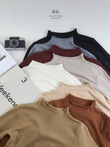 捲邊立領針織衫/柔軟內搭長袖上衣-【341085】