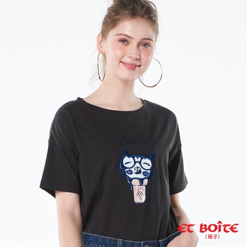 OB嚴選-棉質JUJU印花長版短袖上衣