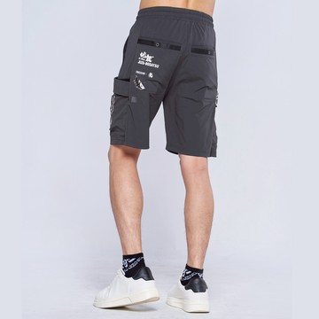 機能風黑色工裝短褲 户外出游裤 男士口袋五分褲子
