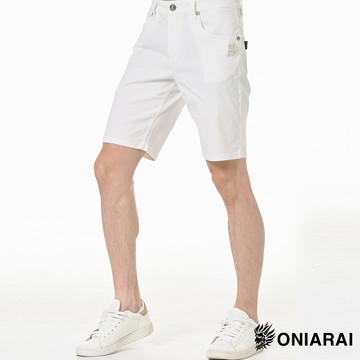 GIORDANO 男裝修身卡其短褲 - 28 海軍藍X白
