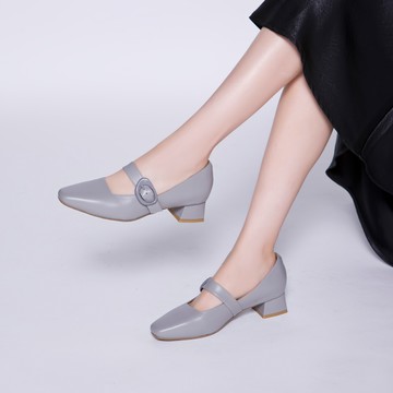 芯太軟 恬雅帶釦真皮瑪莉珍低跟鞋 岩灰 (602864)