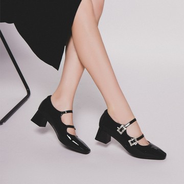 3.4 雙帶瑪莉珍跟鞋 - 黑