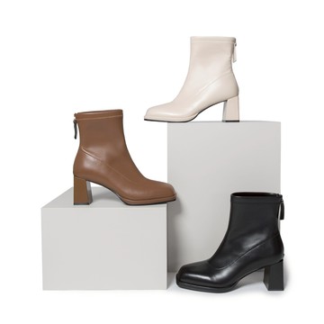 優雅小姐 俐落方頭粗跟短靴 黑 (8L2986)