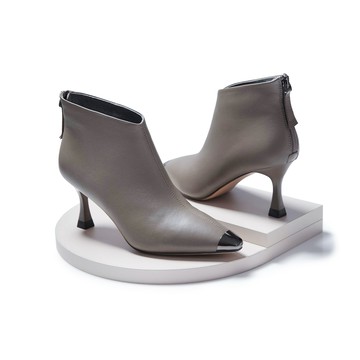 優雅小姐 摩登羊皮素面尖頭短靴 灰 (8H2988)