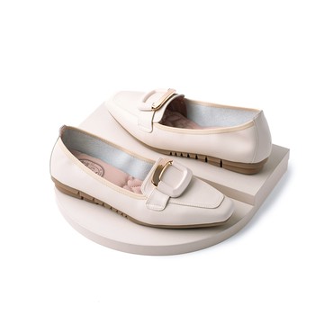 【Grace Gift】歐美便仕軟墊低跟樂福鞋 米白