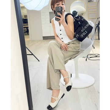 嬿娜1·經典漆皮金扣LOGO折疊平底娃娃鞋-黑(版型偏小1碼)