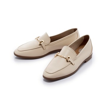 我的旅行日記 簡約扭結羊皮平底樂福鞋 復古白 (502927)