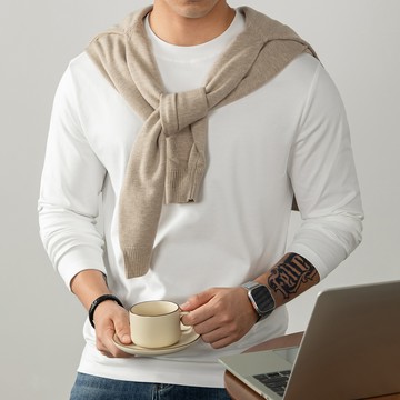 液氨絲光棉!微光澤輕奢觸感270g圓領長袖T恤 / 男女適穿 / 機能彈力 / 8色 / M-5XL / 大尺碼【QTJ19507】