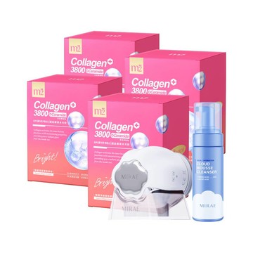 【m2美度】超能水光膠原飲 四盒組-孫藝珍推薦 女人我最大節目 小布老師推薦 保濕飲(8入/4盒)+送【未來美】白金級雲朵洗臉機 + 雲朵泡泡慕絲