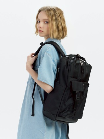男女同款 手提、後背兩用背包 / 字母Logo浮雕 黑 熱賣單品