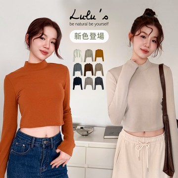 日系保暖磨毛微高領捲邊上衣