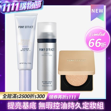 PONY EFFECT 絕對持久無瑕氣墊粉餅明星組 (水透紫+小金磚升級版+控油定妝噴霧)