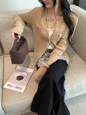 MYVEGA麥雪爾 金蔥口袋針織背心上衣-灰