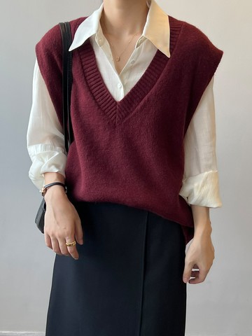 撞色V領學院風針織背心