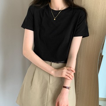 QUEENSHOP_ S 女裝 短袖 基本素面羅紋圓領純棉短袖上衣 三色售 現+預 【01190207】