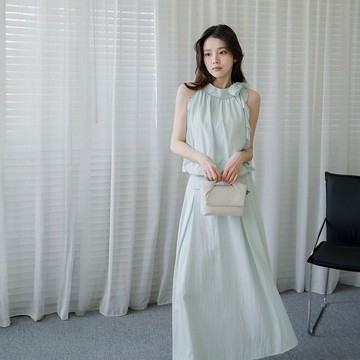 【brs】 韓系白縫線蝴蝶結黑色高腰吊帶裙(上衣+裙子)