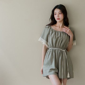 現貨★附綁帶!多穿鬆緊領袖口抽鬚口袋棉麻連身褲(共2色)0513 【NR0967】