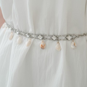 現貨★歐風幾何方塊金屬水鑽垂墜貝殼腰鍊(共1色)0527 【NR1287】