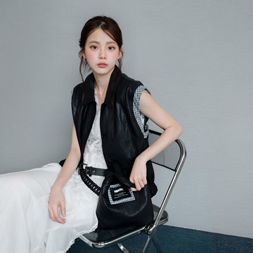 現貨★附小包!方領皮革排釦格紋肩下襬鬆緊背心(共2色)0902 【NR1877】