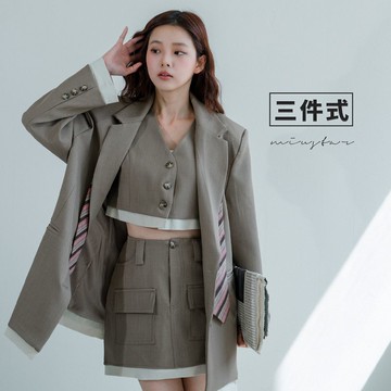 法式極簡 精紡羊毛高智感西裝外套 背心 裙褲套裝