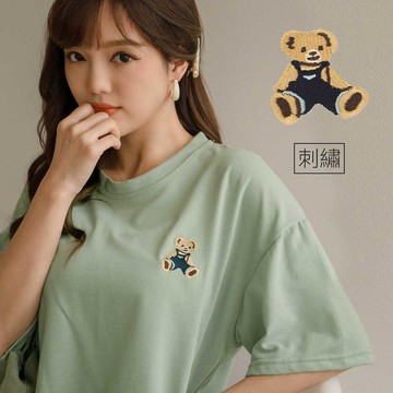 ★正韓.左刺繡泰迪熊吊帶褲印花棉質上衣(共3色)0131 預購【NL3354RE】