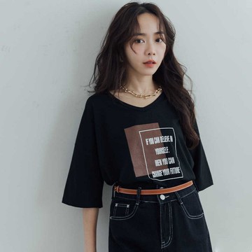 ★[網站獨賣]彈力棉V領配色方框短袖上衣(共2色)0829 預購【NL5519RE】