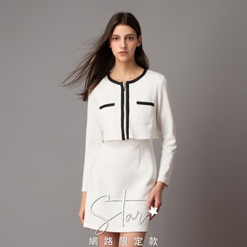STAR 小香風假兩件式高腰空氣布洋裝