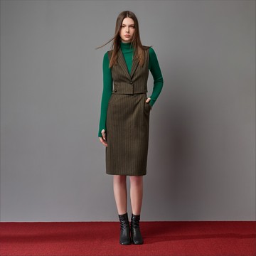 SO NICE 都會2way條紋碳灰仿毛呢馬甲式造型洋裝