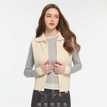 STAR 翻領短版拉鍊仿毛絨針織背心
