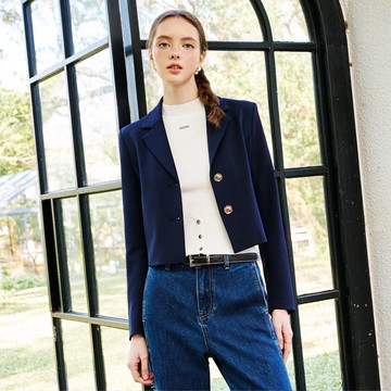 SO NICE 法式簡約海軍藍挺瘦短版西裝外套