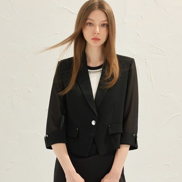加購優惠(M) relco hsu質感西裝五分袖透膚黑色外套
