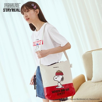 STAYREAL x PEANUTS 史努比mood多色帆布包 - 紅
