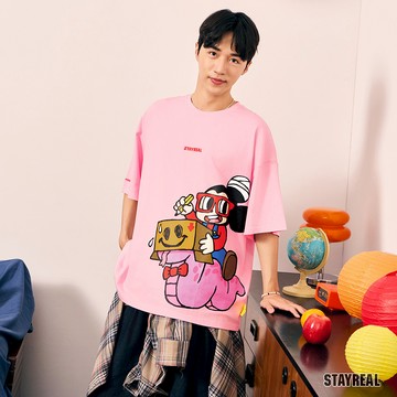 【美式男款】仿麂皮撞色燙圖寬鬆百搭T恤