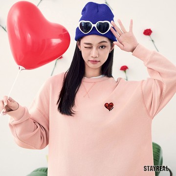 STAYREAL LOVE IS LOVE愛心刺繡寬版T - 粉紅