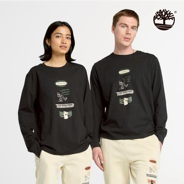 Timberland 中性黑色印花長袖T恤|A43E5001