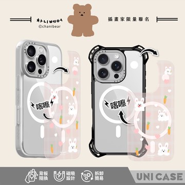 【韓國 Chani bear x Unicorn聯名】UNICASE 喀嚓殼 - Pastel check(pink 半透) 可替換背板保護殼 SGS防摔認證 背板替換 防摔殼 透明殼 手機殼 iPhone
