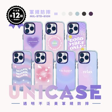 獨家款-Y2K風格 抽象復古文字 UNICASE 透明不泛黃軍規防摔四角支架iPhone保護殼 防摔殼 透明殼 支架殼 手機殼 i14Pro i14 i14ProMax i13 Unicorn