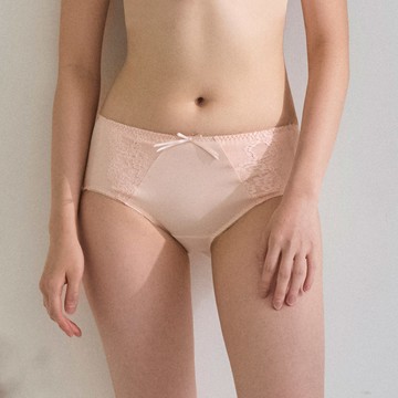 經典純色.花邊中腰三角內褲(蜜桃粉)